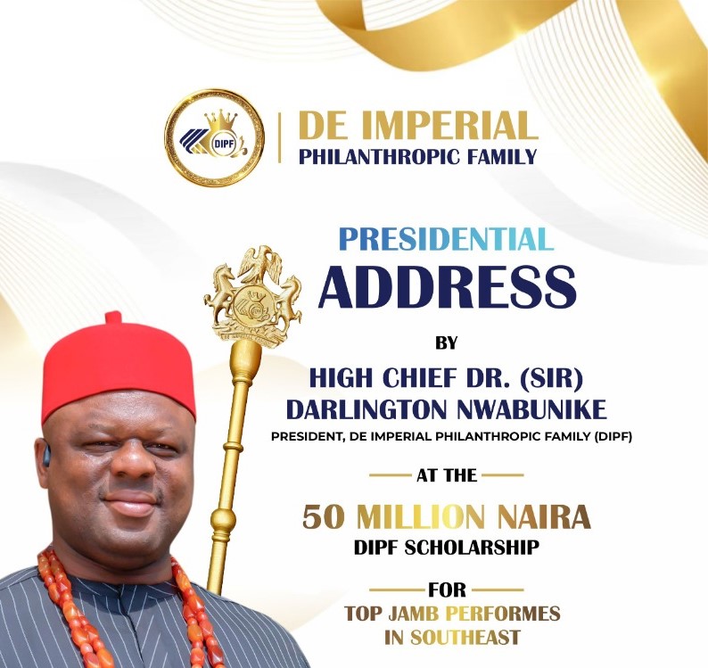 DE IMPERIAL PHILANTHROPIC FAMILY (DIPF) is a group of patriotic, responsible, responsive and dutiful persons, drawn from the South-Eastern demographic, of Nigeria, and across global Disapora.